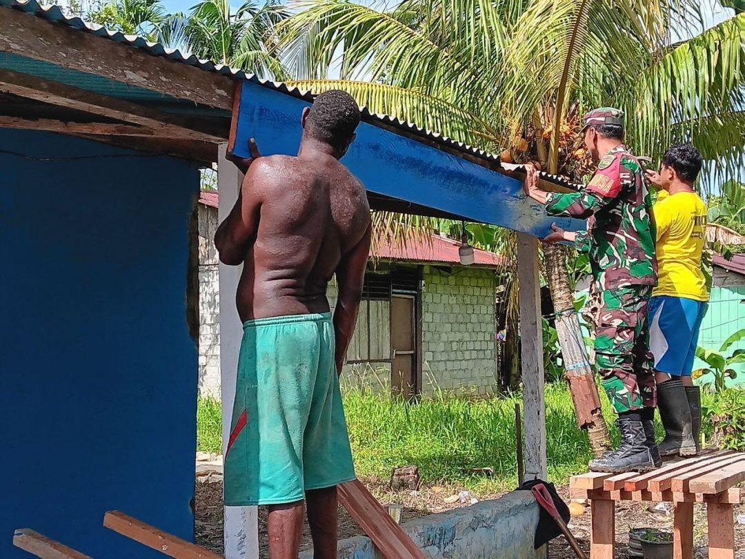 Jurnalsembilan.com | Timika – Babinsa Koramil 1710-07/Mapurujaya, Sertu Tangkas Budiono, melaksanakan kegiatan Komunikasi Sosial (Komsos) sekaligus membantu warga dalam pembangunan rumah milik Ibu Anastasia Pakawe di Kampung Hiripau, Distrik Mimika Timur, Selasa (2/12/2025).