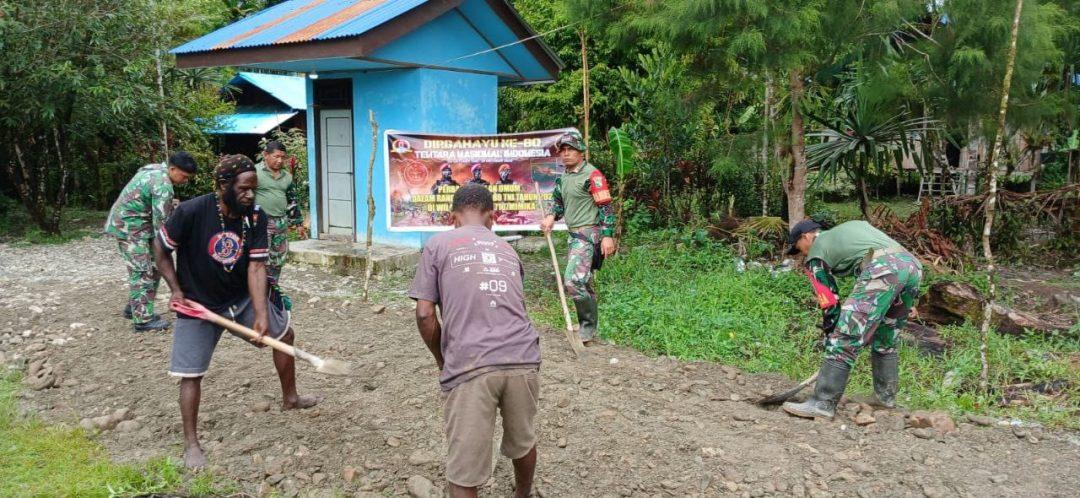 Jurnalsembilan.com | Timika – Wujud Bakti nyata sebagai satuan kewilayahan menjelang peringatan HUT ke-80 TNI tahun 2025, Kodim 1710/Mimika menyelengarakan kegiatan karya bakti perbaikan fasilitas umum berupa jalan masuk menuju Kp. Jimbi, Distrik Kuala Kencana, Kab. Mimika, Kamis (25/09/2025).