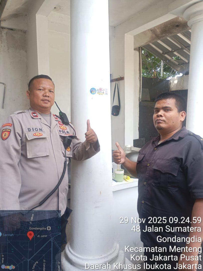 Jurnalsembilan.com Jakarta Pusat — Polsek Metro Menteng terus mendorong pelayanan publik berbasis teknologi melalui program Sahabat Patroli Polisi. Dalam rangka mengenalkan layanan tersebut kepada masyarakat, anggota Samapta Polsek Metro Menteng bersama Aipda Dion Sinaga melaksanakan sosialisasi dengan menempelkan stiker barcode di sepanjang Jalan Sumatera, Gondangdia, Menteng, Jakarta Pusat.