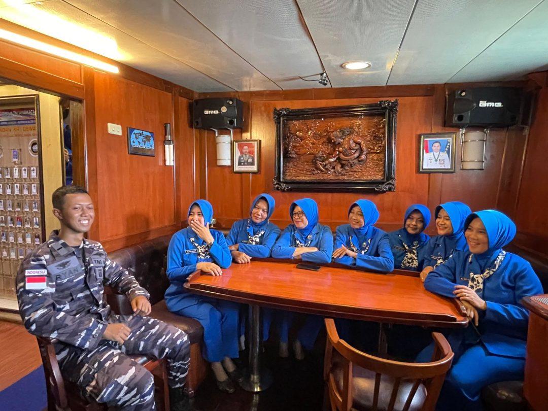 Jurnalsembilan.com TNI AL, Bintan,- Ketua Cabang 5 Korcab IV Daerah Jalasenastri Armada I Ny. Erni Eko Agus Susanto bersama pengurus turut serta mendampingi Danlanal Bintan dalam rangka menyambut kedatangan KRI Dewa Ruci yang membawa misi Muhibah Budaya Jalur Rempah Tahun 2024 di Dermaga Lanal Bintan, Tanjung Uban, Jum’at (05/07/2024).
