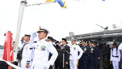 Jurnalsembilan.com.TNI AL, Bandung,- Komandan Lanal (Danlanal) Bandung Kolonel Laut (P) Erfan Indra Darmawan, S.E., M.Tr.Hanla., M.M., CIQaR., menghadiri Upacara Peringatan Hari Pahlawan Tingkat Provinsi Jawa Barat Tahun 2025, bertindak selaku Pembina Upacara Sekretaris Daerah (Sekda) Provinsi Jawa Barat Herman Suryatman, bertempat di Halama Depan Gedung Sate Kota Bandung, Senin (10/11/2025).