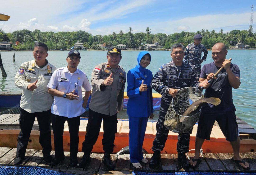 Komandan Lanal Bintan Letkol Laut (P) Eko Agus Susanto, S.E., M.M., didampingi Perwira Staf Lanal Bintan serta Ketua Cabang 5 Korcab IV DJA I, melaksanakan Panen Raya Ikan Kerapu dalam rangka Program Ketahanan Pangan Lanal Bintan.