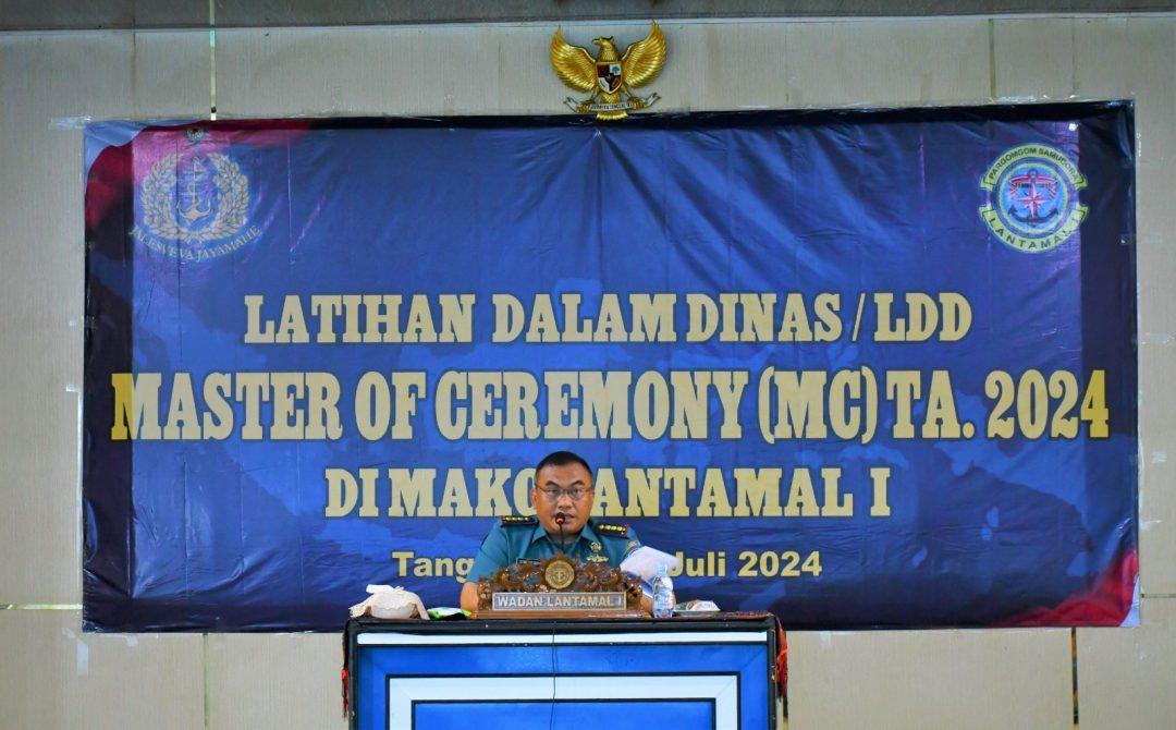 Jurnalsembilan.com TNI AL, Belawan,- Komandan Pangkalan Utama TNI Angkatan Laut I (Danlantamal I) Brigjen TNI (Mar) Jasiman Purba, S. E., CHRMP., yang diwakili Wadan Lantamal I Kolonel Laut (P) Siswo Widodo, S.T., membuka Latihan Dalam Dinas (LDD) Pelatihan Master Of Ceremony (MC), bertempat di Gedung OB. Syaaf Mako Lantamal I, Jalan Serma Hanafiah No. 01 Belawan, Sumatera Utara, Selasa (02/7/2024).