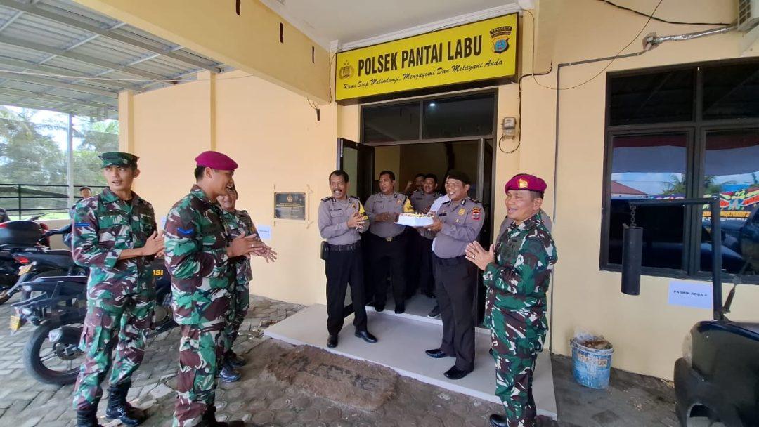 Suasana akrab dan kekeluargaan terlihat ketika Pjs. Danposal Pantai Labu Letda Marinir Olpen Situmorang, S.H., beserta prajurit Posal memasuki Kantor Polsek dan menyanyikan lagu selamat ulang tahun. Kemudian acara dilanjutkan dengan ucapan ulang tahun, peniupan lilin dan pemotongan kue.