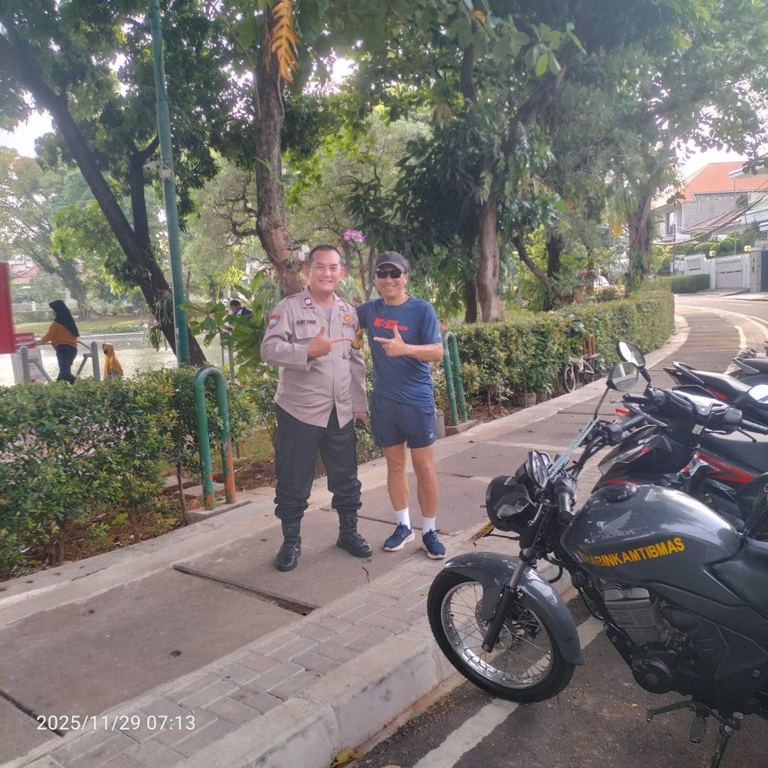 Jurnalsembilan.com Jakarta Pusat – Dalam rangka menjaga keamanan dan ketertiban masyarakat di wilayah pemukiman Menteng, Bhabinkamtibmas Kelurahan Menteng, Aiptu Robby Danan Jaya, melaksanakan patroli dialogis di kawasan Taman Situ Lembang RT 05 RW 05, Menteng, Jakarta Pusat, pada Sabtu (29/11/2025). Patroli ini merupakan bagian dari kegiatan rutin kepolisian untuk memastikan lingkungan tetap aman, nyaman, dan kondusif, terutama di area ruang publik dan pemukiman sekitar taman.