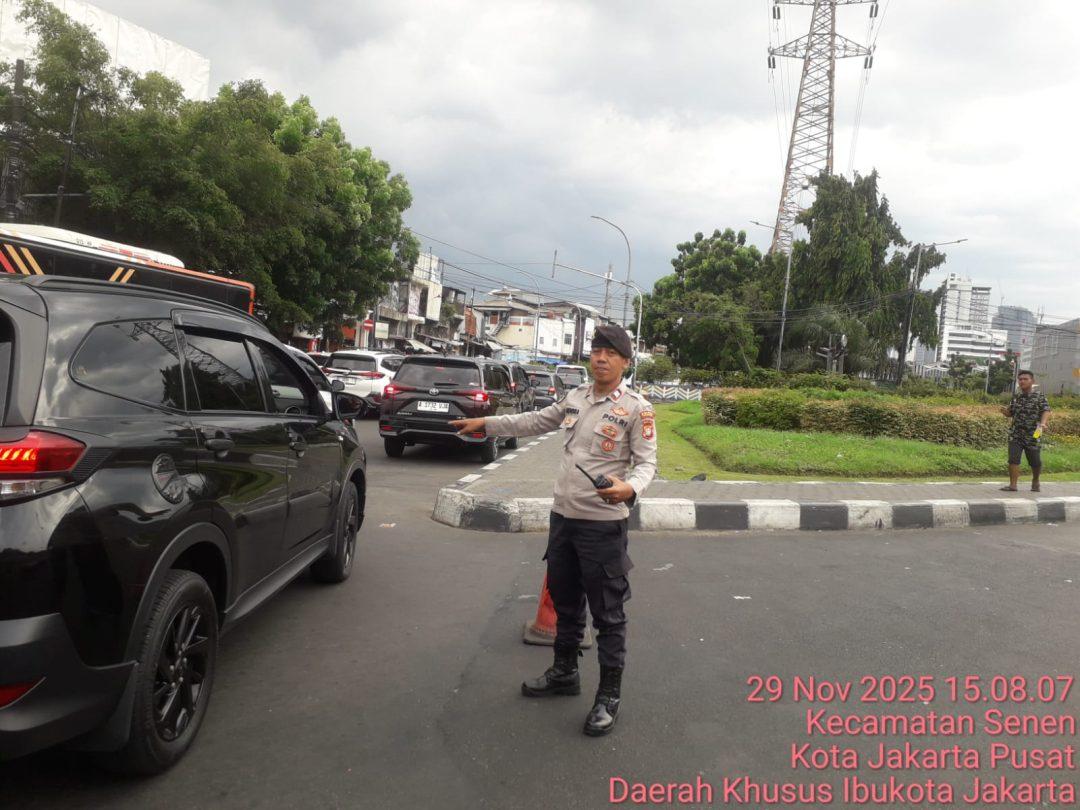 Jurnalsembilan.com.Jakarta — Anggota Unit Samapta Polsek Senen melaksanakan kegiatan pengaturan lalu lintas pada Sabtu (29/11/2025) di kawasan Kramat Bunder, Kecamatan Senen, Jakarta Pusat. Kegiatan dimulai pukul 15.00 WIB hingga selesai sebagai upaya menjaga kelancaran arus kendaraan pada akhir pekan.