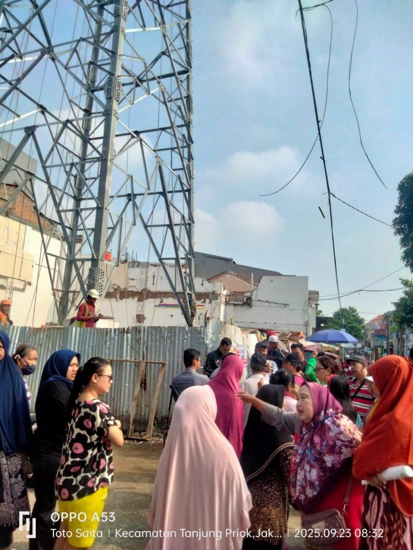 JurnalSembilan | Jakarta (23/092025) – Kelanjutan pembangunan sutet yang berdiri di RW. 09 kelurahan Kebon Bawang Jakarta Utara membuat 3 RT yang terkena imbas jalur sutet memprotes agar proyek tersebut di hentikan.