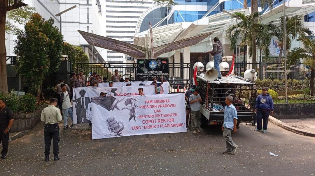 Hingga aksi bubar, tak ada pernyataan dari pejabat kementerian. Hanya pintu kaca gedung yang tertutup rapat dan halaman lengang, kontras dengan suara tuntutan yang menggema di luar. Polemik ini—yang semestinya menjadi urusan etika akademik—kini berubah menjadi ujian bagi pemerintah dalam menjaga marwah perguruan tinggi negeri.