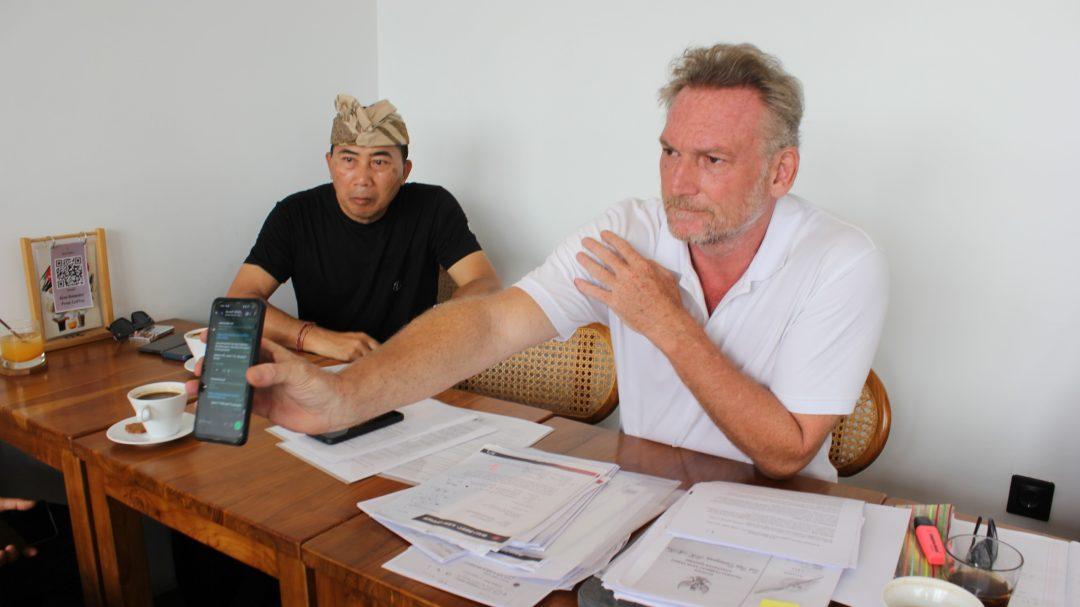 After Petroulas began constructing an access road over the irrigation system without coordinating with local authorities, the Subak demanded a standard contribution of 10 million rupiah (approximately US$600). Instead of complying and engaging in respectful dialogue, Petroulas accused the Subak of “harassment” and personally insulted community leaders. “He then used this false story as an excuse to intimidate the current land tenant and attempt to extort compensation of 2 billion rupiah (approximately US$125,000) from the elderly man—200 times the reasonable donation requested by the Subak,” Phillippe explained to the media, accompanied by his attorney, I Nyoman Wirajaya, S.H., M.H., on Monday, October 27, 2025, in Canggu, Bali.