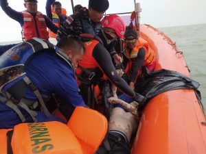 Jurnalsembilan-TNI AL, Palembang, 23 Februari 2023,- Bertempat di Ambang Luar Perairan Sungsang (OB) Kabupaten Banyuasin sekira pukul 13.00 Wib, Personel Binpotmar TNI AL Sungsang bersama Basarnas dan Polairud Polda Sumsel yang melaksanakan SAR korban hilangnya ABK TB. Karya Pasifik 19 gandeng TK. Sea Gate 2701 yang jatuh dari atas kapal di Ambang Luar Perairan Sungsang Kabupaten Banyuasin, korban telah berhasil ditemukan pada koordinat S 2°12.157′- E 104°56.959′ korban sudah dalam keadaan meninggal dunia, selanjutnya korban langsung dibawa oleh kapal Basarnas Palembang.